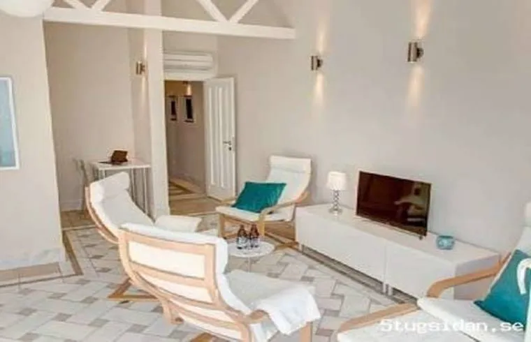 Lägenheten är utrustad för 6 personer, med möjlighet till extrabäddar. Den är i