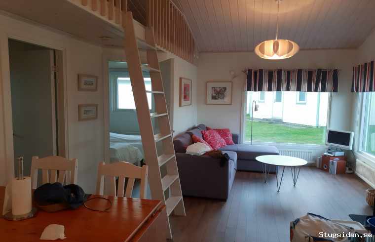 Sovloft med madrasser för ytterligare 4 personer. Allt som allt har stugan