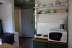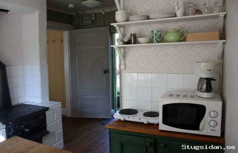 Kök med sittplats, kyl, kokplatta, Micro, kaffekokare.