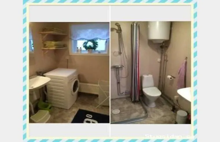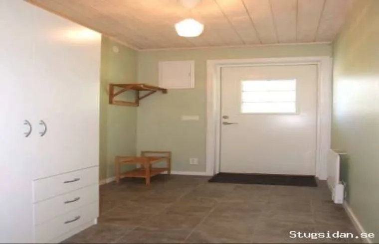 Stugan är på 60 kvm med kök, vardagsrum, toalett (med dusch) och två sovrum med vardera 2 st