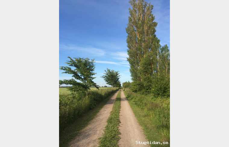 Gården ligger på privat grusväg direkt innanför kusten med strandremsan och