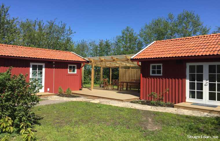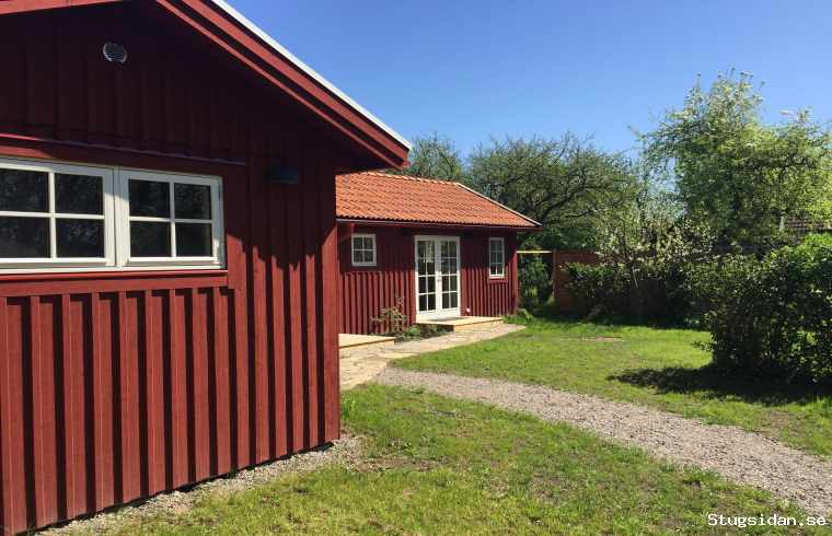 Stugan har trädgård på fyra sidor och egen infart och parkering. Boendet består