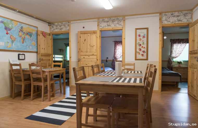 stallet och hagen. Stugan består av fyra stycken sovrum med två till fyra