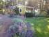 Inglasad altan under tak med utemöbel. Grillplats nära altan.