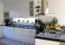 På mellanvåningen finns kök, matplats och vardagsrum i en öppen planlösning och