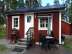 Busshållplats Engesvik. Stugan finns ca 200 m efter vägen,