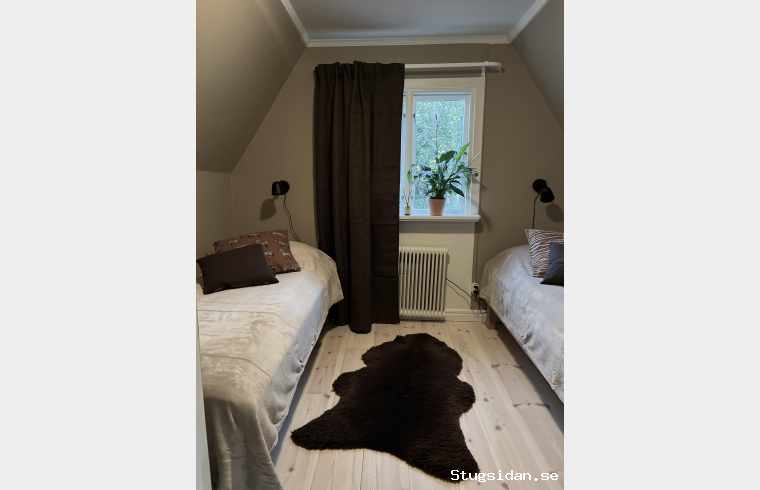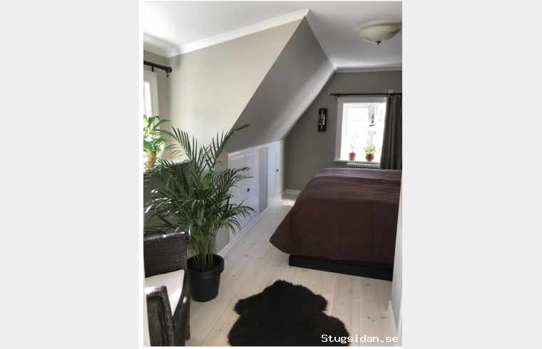 Övervåning: Två sovrum. Ett sovrum med dubbelsäng. Det