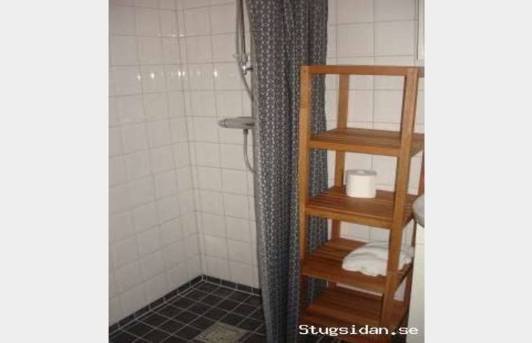 toalett. Här finns separett, handfat och dusch med varmt och kallt vatten.