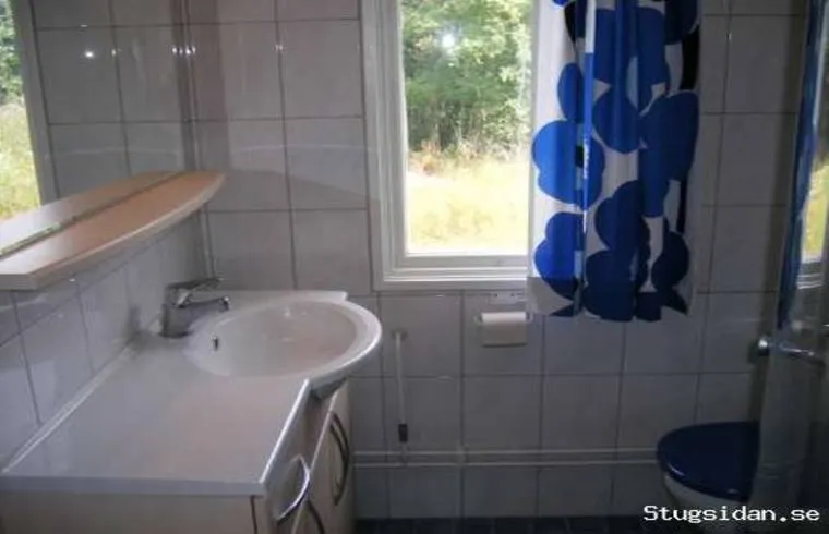 separata resårsängar, kök och badrum med dusch och WC. Elvärme, öppen spis,