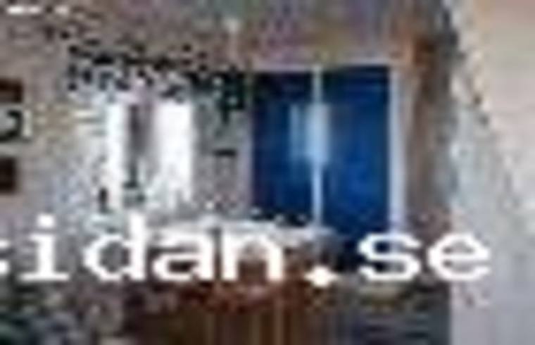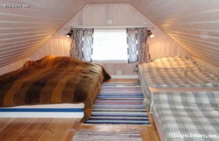 samt en 120 cm bred säng. Snedtak och låg takhöjd på loftet. Möjlighet att