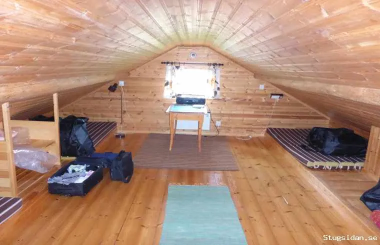 Övre plan har sovutrymmen för 6 personer. Hela huset