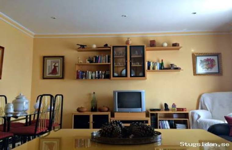 Rymlig lounge - bekväma soffor och T.V. Dörrar till terrass på framsidan av