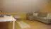 På övervåning finns ett rum med bäddsoffa (1.60), badrum med tvättmaskin, duschkabin och wc, en liten myshörna ovanför trappan, ett litet lekhörn för ev. barn samt ett större rum som är avdelat i två. Ena delen har 2x90 sängar som går att använda som dubbelsäng eller enkelsängar, och en juniorsäng, i andra delen finns ytterligare 2 st 90 sängar. Resespjälsäng finns att låna vid behov.