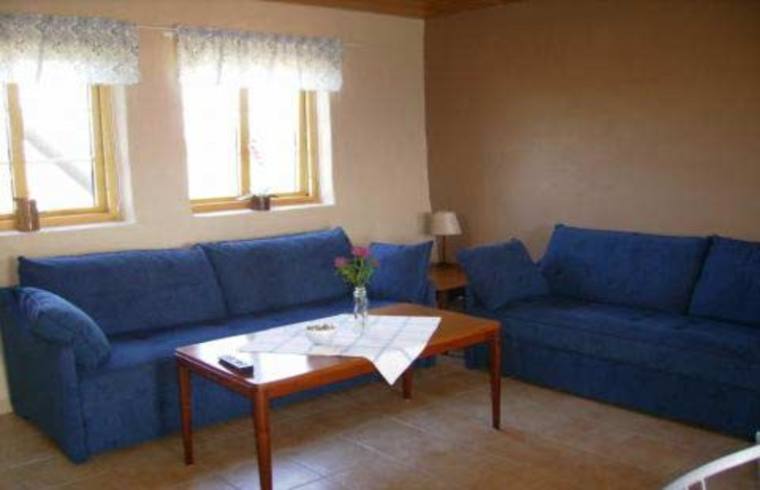 bäddsoffor i vardagsrummet. Logen är delvis funktionsanpassad.