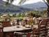 There is a large communal outdoor dining area, seating up to 22