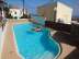 svømmebasseng, solterrasse med solsenger, utendørs møbler til
