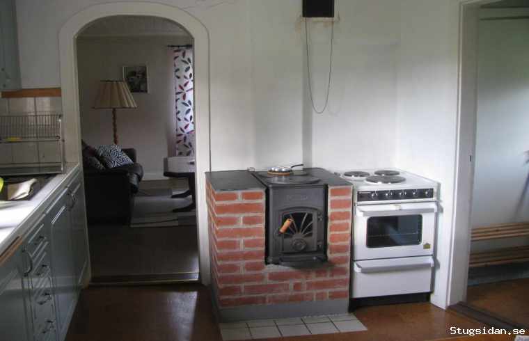 finns både elspis/ugn och vedeldad köksspis. Ett sovrum och ett vardagsrum där det