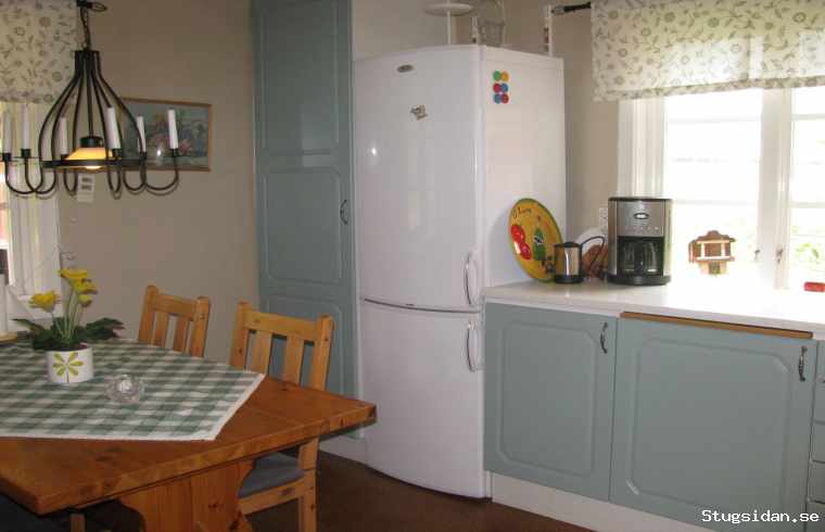 Stugan har ett välutrustat kök med micro, kaffebryggare, brödrost och kyl/frys och det