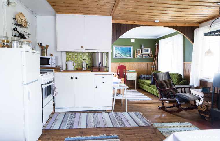 Stuga med självhushåll vid Torneälven, vedeldad spis, el med ugn och spisplattor, utrustad för självhushåll,