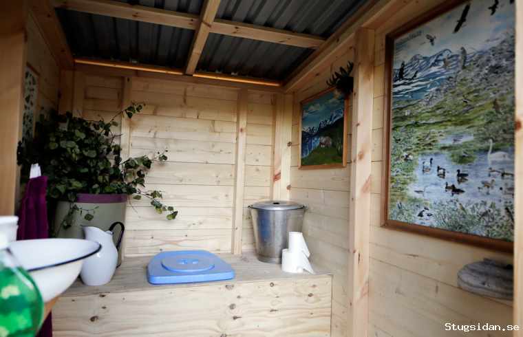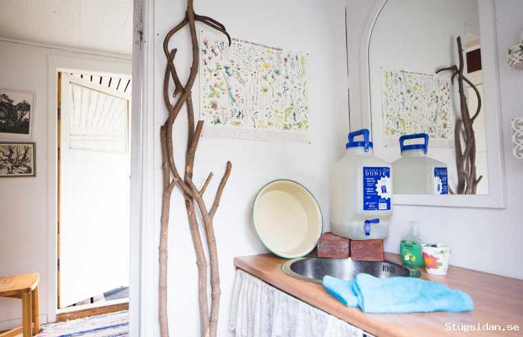 kylskåp med frysfack, möjlighet att fylla på dricksvatten i intilliggande byggnad på yttervägg.