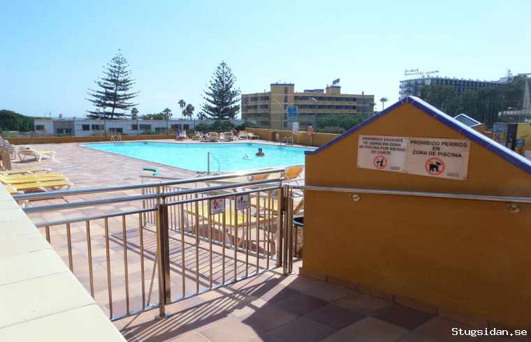 Ingles. Självklart, med en fin sandstrand. San Agustins köpcentrum ligger bara 1 km bort, där du hittar