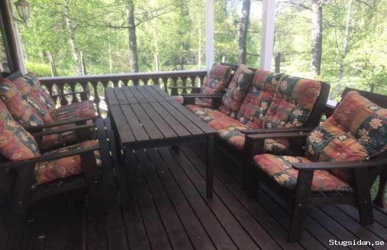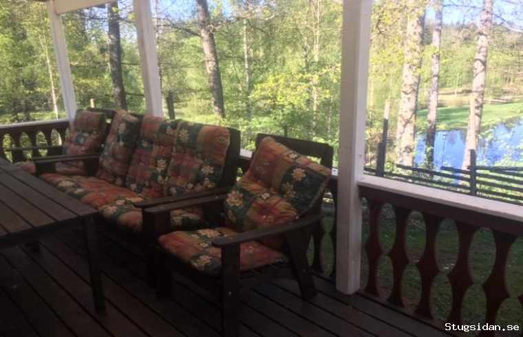 till.Sitt och njut på den överbyggda altanen med utsikt över dammen. Grill ingår.
