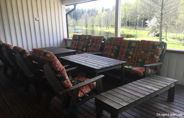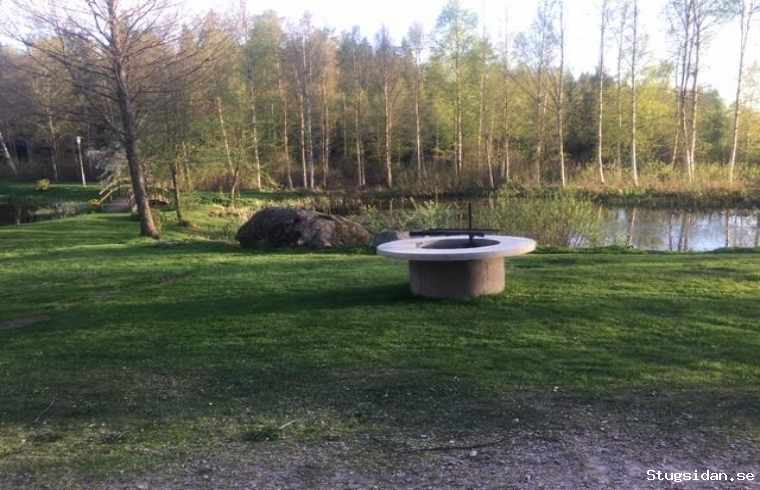 till.Sitt och njut på den överbyggda altanen med utsikt över dammen. Grill ingår.