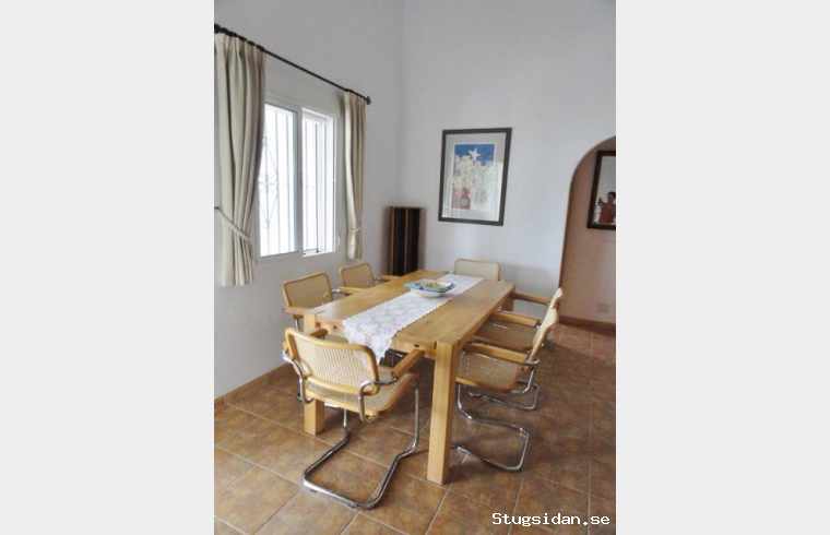 finns ett fullt utrustat kök, rymligt vardagsrum/matsal med