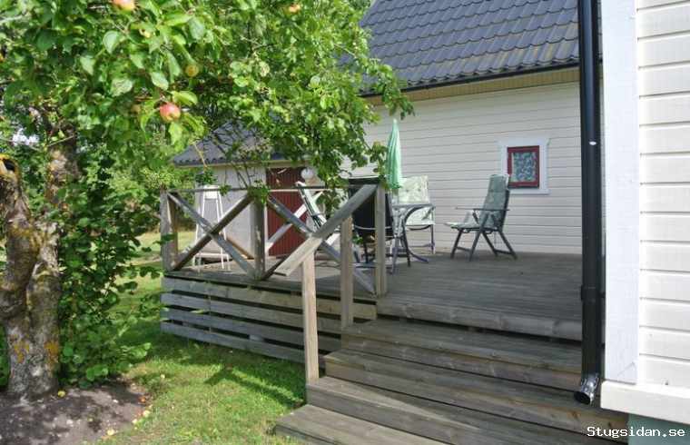 Även separat uteplats med trädgårdsmöbel under tak