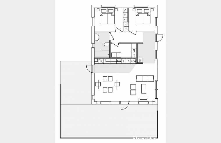 ett stort trädäck på 80 m2 med utemöbler och