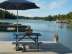 soldäck, campingmöbel och badstege.