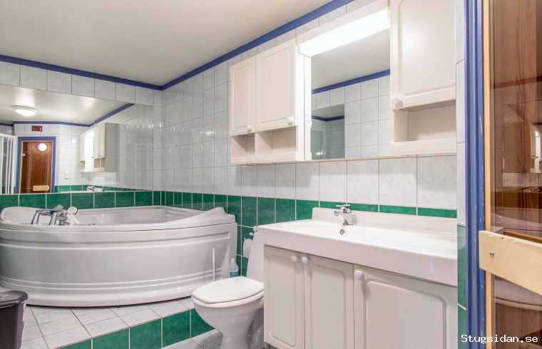 Badrum 2 med dusch, WC, bastu och bubbelbad.