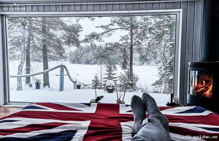 2 braskaminer, varav 1 braskamin är i det nybyggda sovrum / allrum med vikdörrar direkt till det byggda trädäcket vid sjön, och ett stort fönster mot sjön som vy.