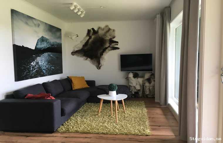 I vardagsrummet finns en bekväm soffa att slå sig ned i efter en heldag ute,Tv finns med chromecast dock inget wifi för tillfället (skall dras in sommar 2019).