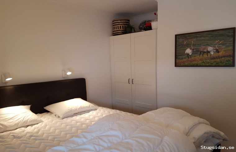 Det finns 6 stycken sovplatser. I det större sovrummet finns 2 våningssängar 90x200 och i det mindre sovrummet finns en dubbelsäng som är 160x200. I en av sovrummen finns en fjällkarta över området i borgafjäll för att kunna lokalisera sig.