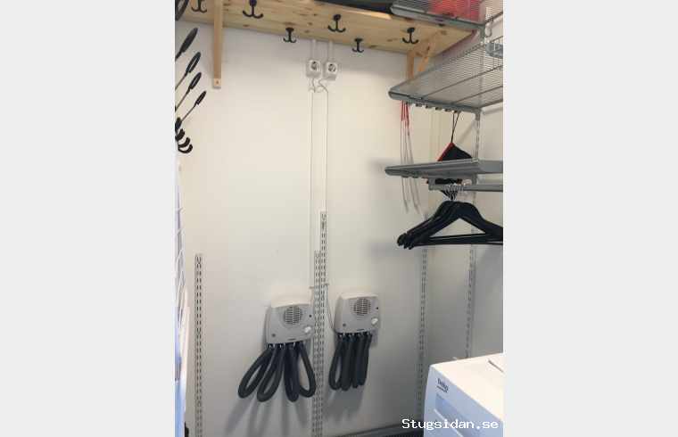På utsidan vid entrén finns en tvättstuga/torkrum med en kombinerad tvättmaskin/torktumlare, två skotorkar, och luftavfuktare för snabbare torktid på blöta kläder. Utöver detta finns det 3 sittunderlag och en 20 liters bensindunk att tillgå.