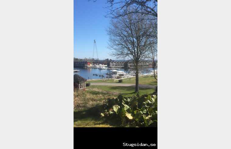 över Sunnanå hamn endast 50 meter från vattnet och bryggorna.