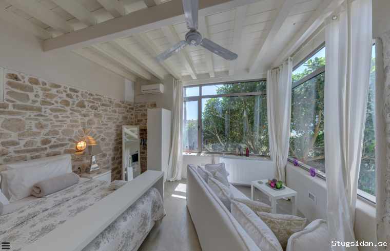 The four unique bedrooms, each with a separate entrance, provide an unobstructed and fascinating view of the glistening nearby sea. Three en-suite shower bathrooms, two with bidet, and a bathroom with bathtub, washing machine, dryer, ironing board, give the house a special touch.
