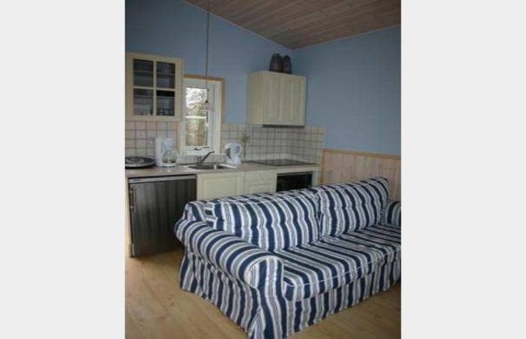• Stue med sovesofa, soveværelse med dobbelt-seng, hems med sovesofa.