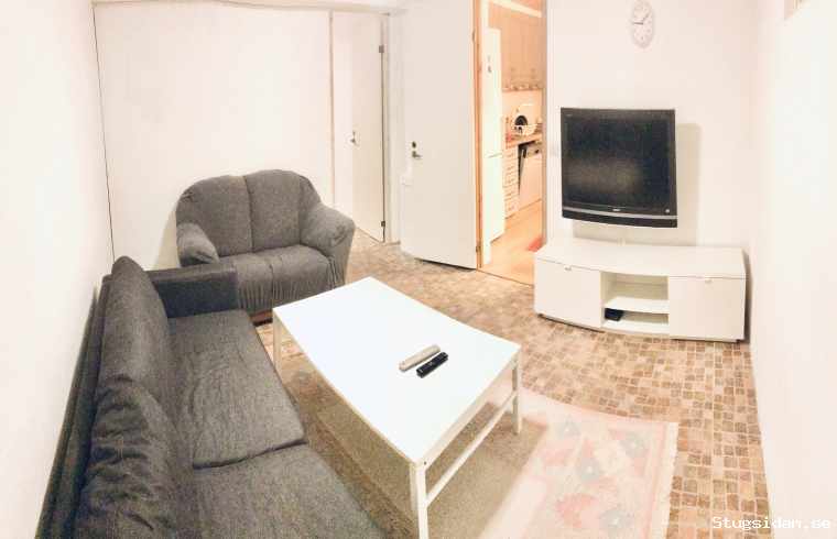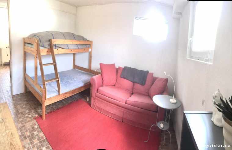 Lägenheten har ett sovrum med sängplatser för 5 personer och ett vardagsrum med bäddsoffa för 2.
