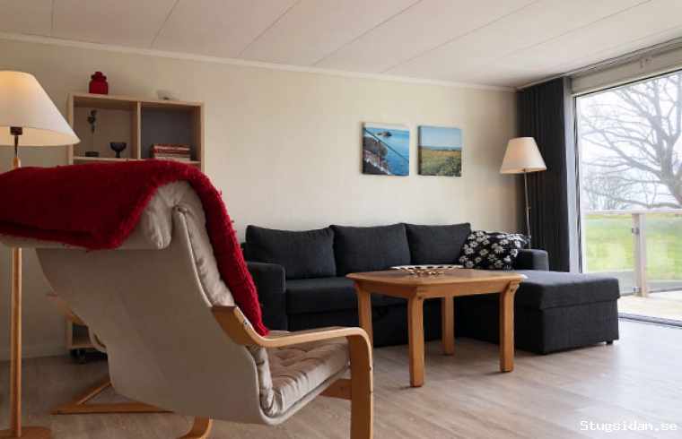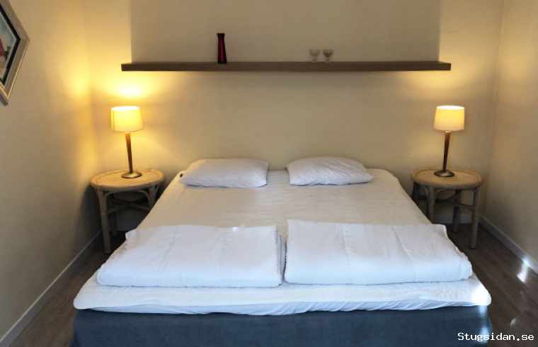 Här finns bäddplatser för 4 vuxna och 2 barn. Ett sovrum med dubbelsäng samt bäddsoffa för 2 i allrum. Dessutom finns 2 bäddar i friggebod på tomten.