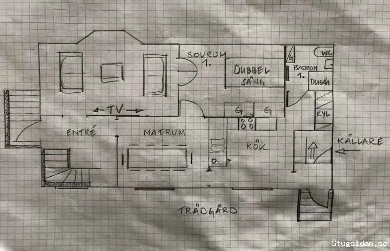 matrum, vardagsrum och kök. I källaren, som är oinredd,