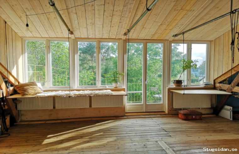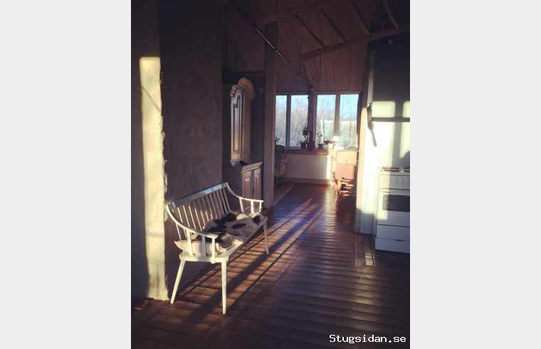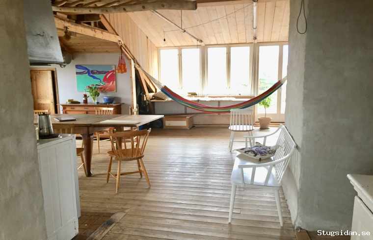 sovloft, ett sovrum, högt i tak, öppen spis, uteplats och en stor trädgård med