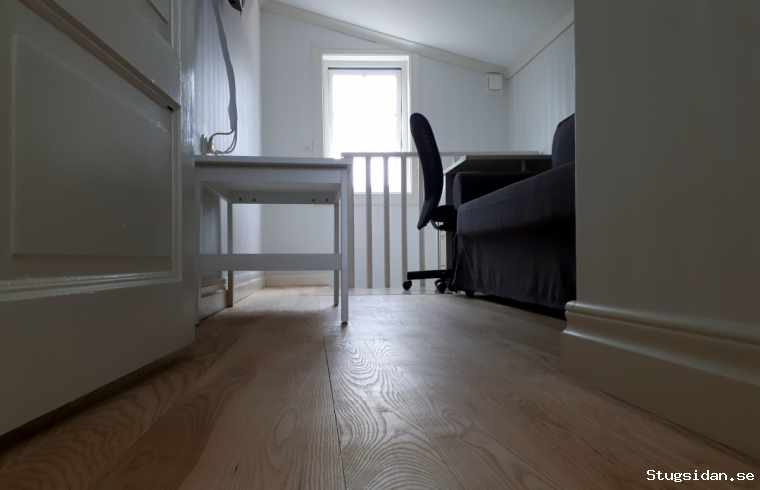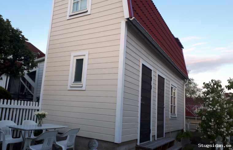 Stuga ligger i ett villaområde med bara 100 meter till havet