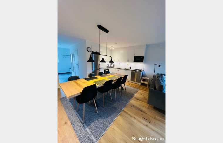 Lägenhet på 122 m2 10-12 bäddar i två våningar nybyggd, innehåller två toaletter och