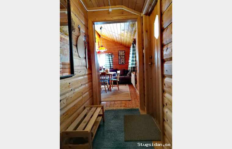 Timmerstuga med altan och parkering för bilen sker alldeles intill