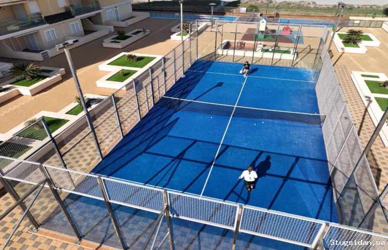 Området har pool med barnpool, lekplats, padelbana, garage med plats för en bil, hiss
