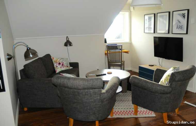 sovrum, två allrum med sköna soffor o fåtöljer, öppen planlösning