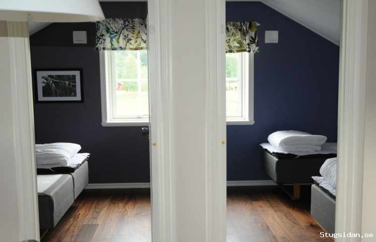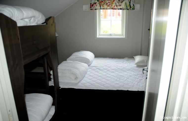 På nedre vån finns sovrum 1 med en 160 cm säng, på övervåningen