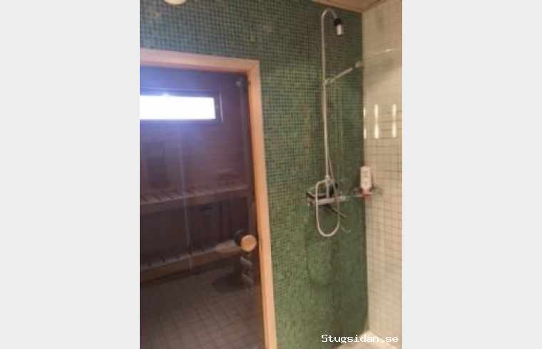 två torkskåp finns. Dubbelsäng, pentry, tv, toalett+dusch och